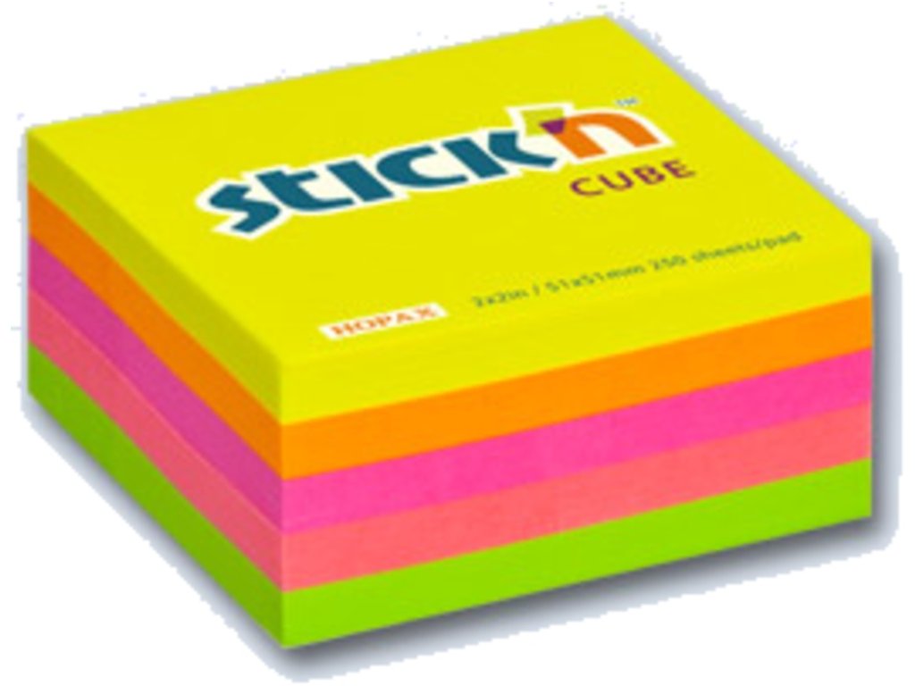 Bloček samolepící 51x51 5 barev, neonový, 250 listů, Stick