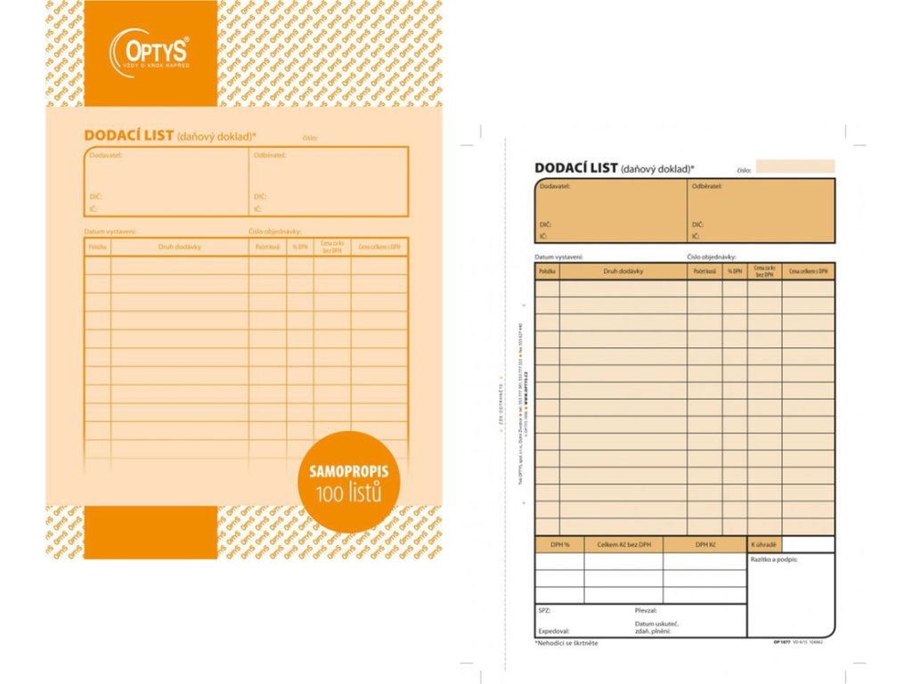 Dodací list A5 (daňový doklad) OPTYS propisující 100 listů 1077