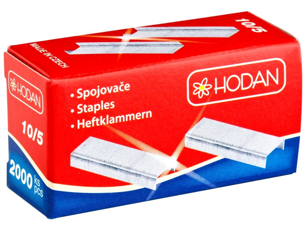 Standardní kancelářské spony (spojovače) velikosti No. 10/5. Vhodné pro malé a mini sešívačky. Délka raménka 5 mm, pro sešití až cca 20 listů. Balení obsahuje 2000 kusů.