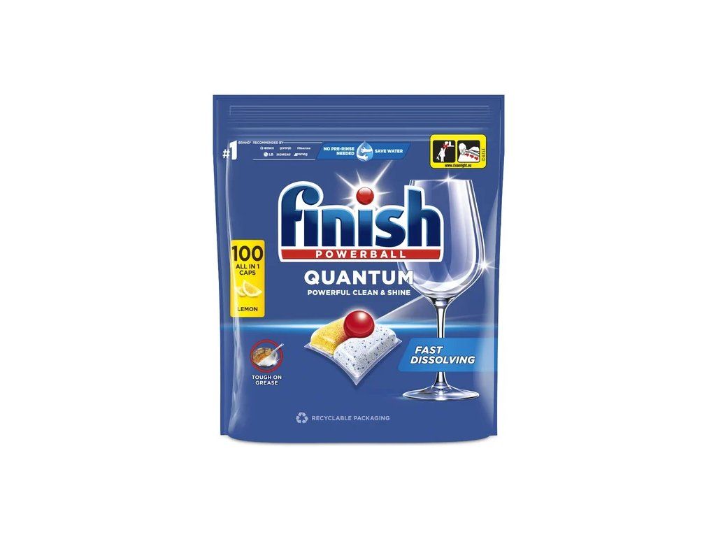Kapsle do myčky Finish Quantum All in 1 se svěží vůní citronu zanechávají zářivě čisté nádobí a nezanechávají usazeniny v myčce. Dokonale rozpouští odolnou mastnotu.