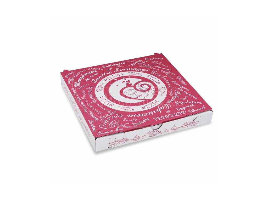 Krabice na pizzu (mikrovlnitá lepenka) C4 bílá s potiskem 24 x 24 x 3 cm [100 ks]