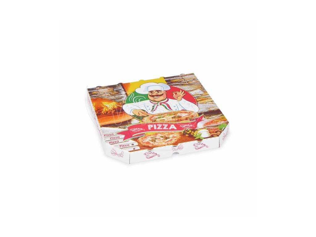 Krabice na pizzu (mikrovlnitá lepenka) E6 bílá s potiskem 30 x 30 x 3 cm [100 ks]