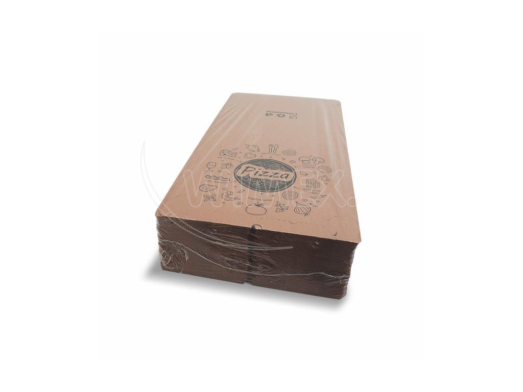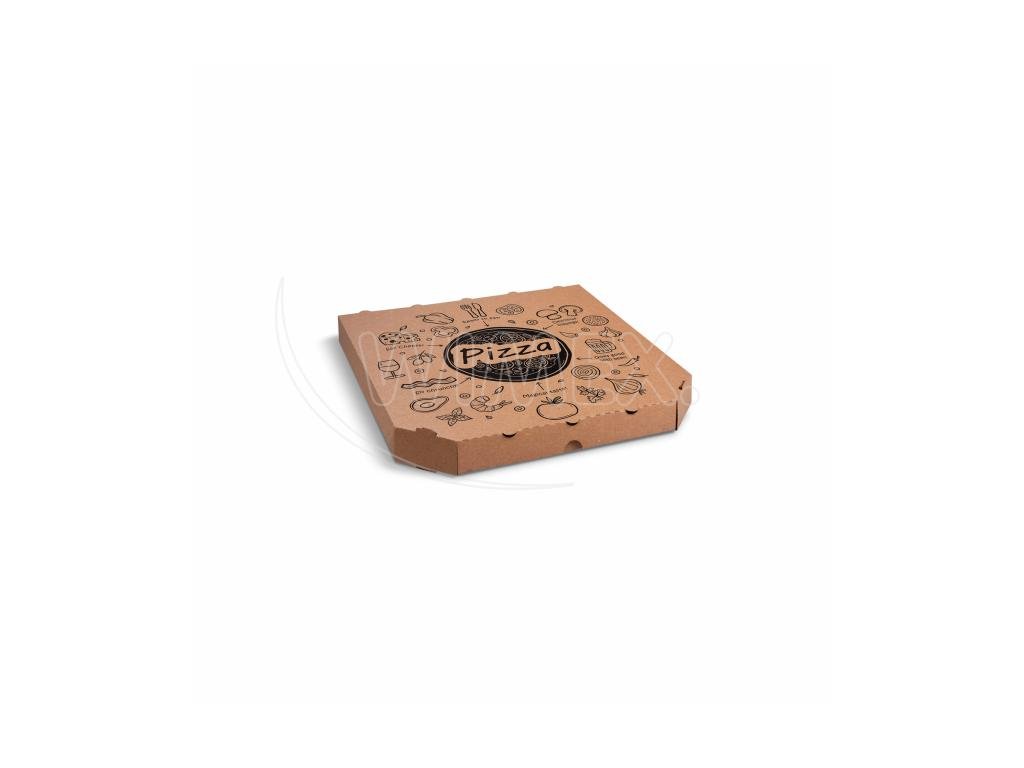 Krabice na pizzu (mikrovlnitá lepenka) E6 kraft s potiskem 32 x 32 x 3 cm [100 ks]