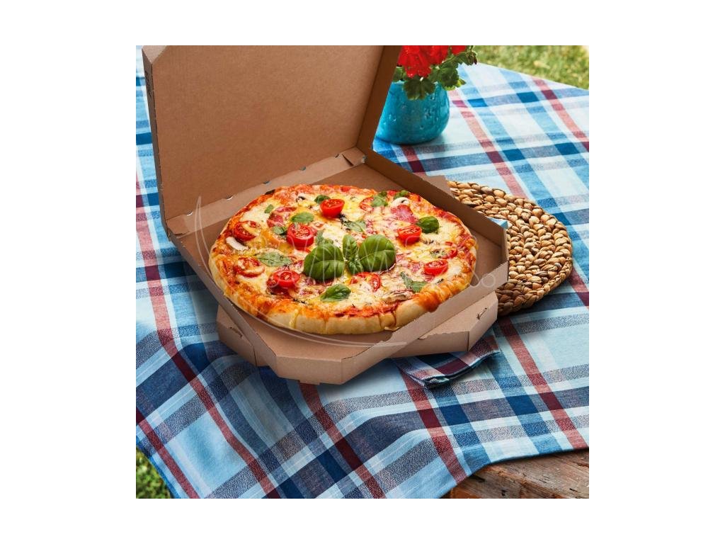 Krabice na pizzu (mikrovlnitá lepenka) E6 kraft s potiskem 32 x 32 x 3 cm [100 ks]Doplňkové parametry