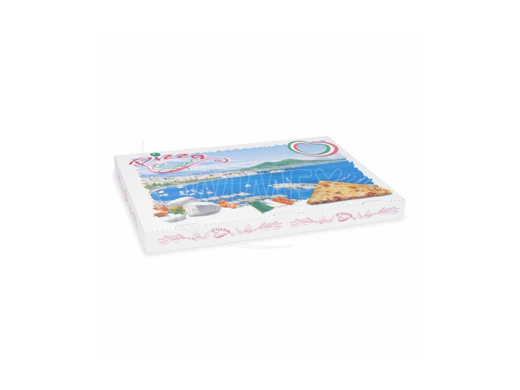 Krabice na pizzu (mikrovlnitá lepenka) G4 bílá s potiskem 60 x 40 x 5 cm [50 ks]