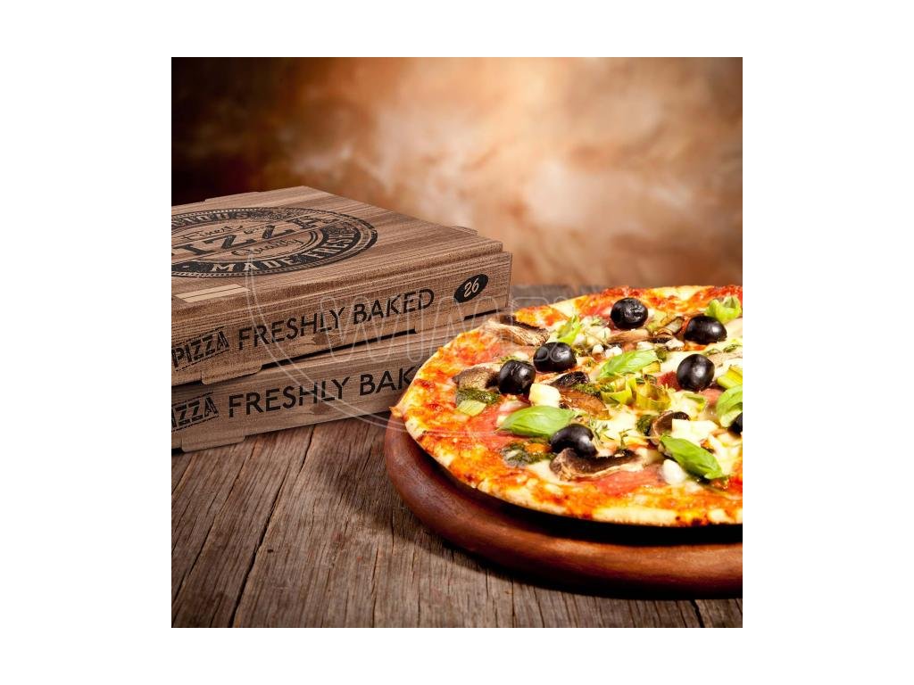 Krabice na pizzu (mikrovlnitá lepenka) H4 kraft s potiskem 26 x 26 x 4 cm [100 ks]Doplňkové parametry