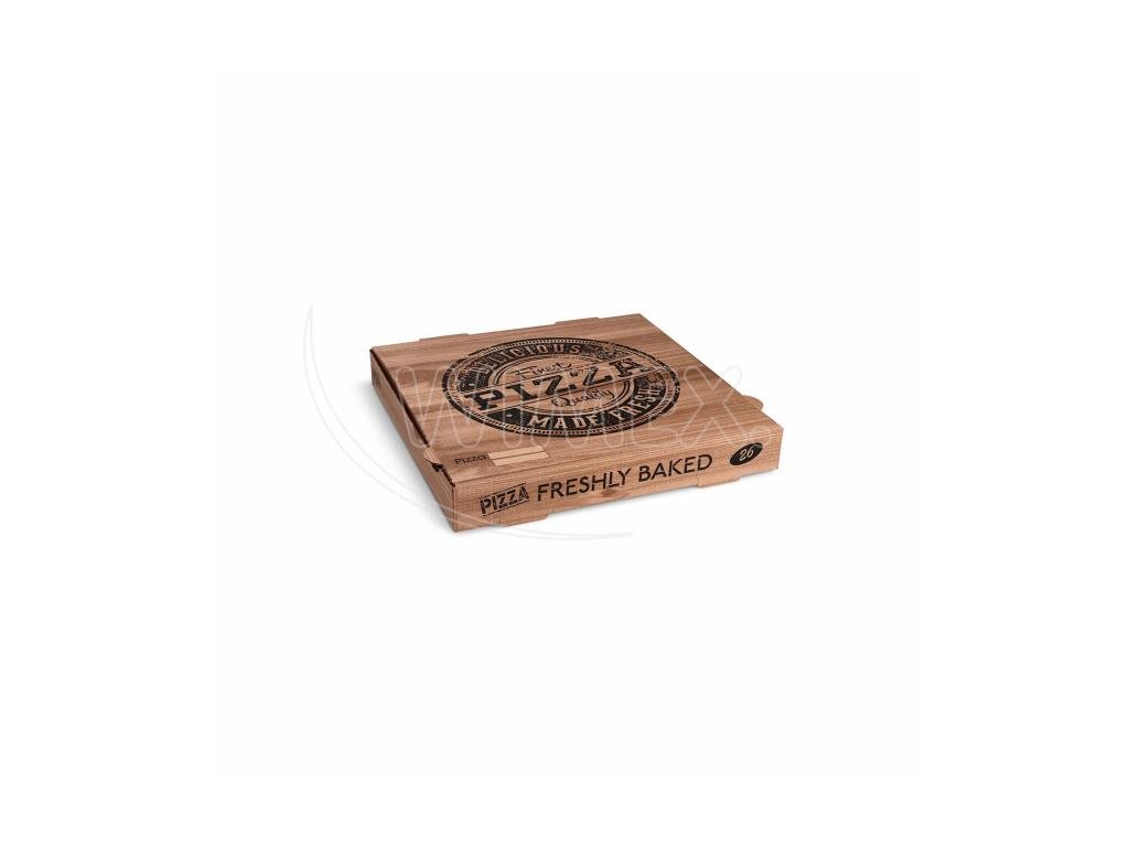 Krabice na pizzu (mikrovlnitá lepenka) H4 kraft s potiskem 26 x 26 x 4 cm [100 ks]