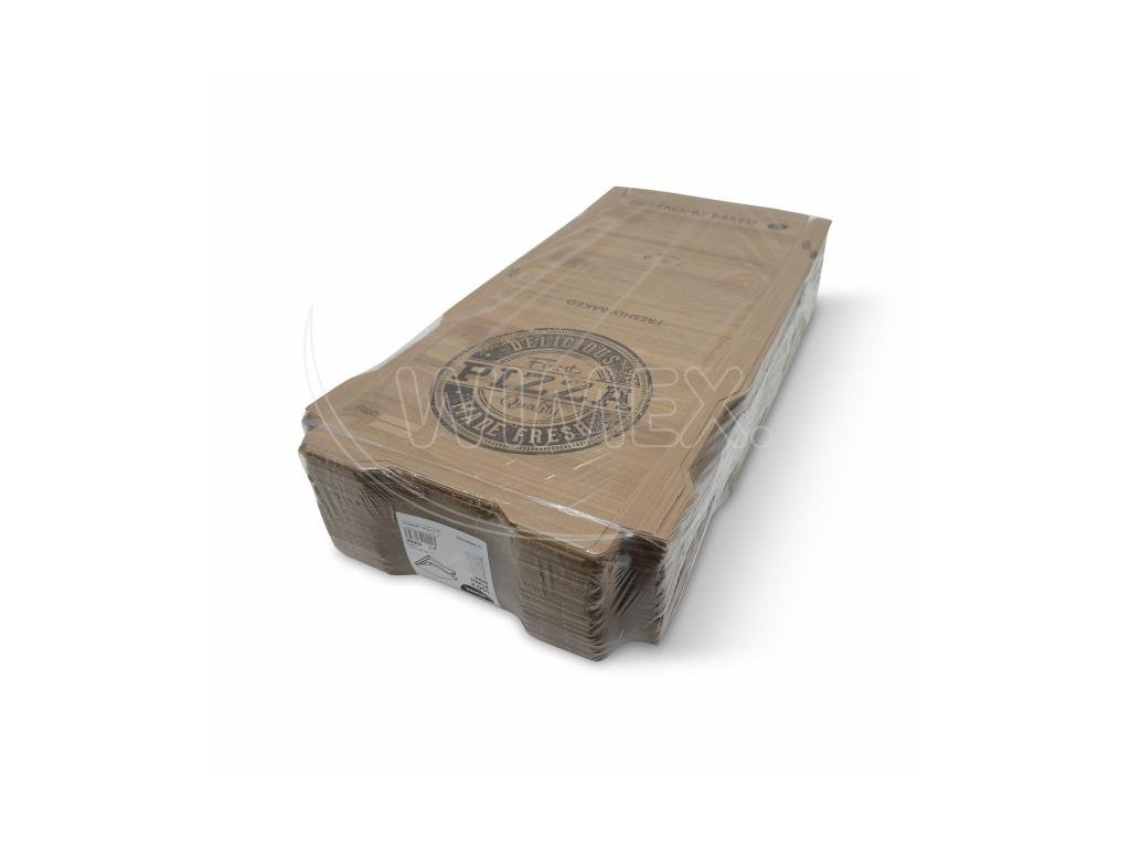 Krabice na pizzu (mikrovlnitá lepenka) H4 kraft s potiskem 32 x 32 x 4 cm [100 ks]