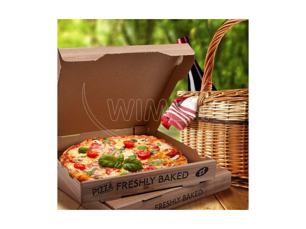 Krabice na pizzu (mikrovlnitá lepenka) H4 kraft s potiskem 32 x 32 x 4 cm [100 ks]Doplňkové parametry