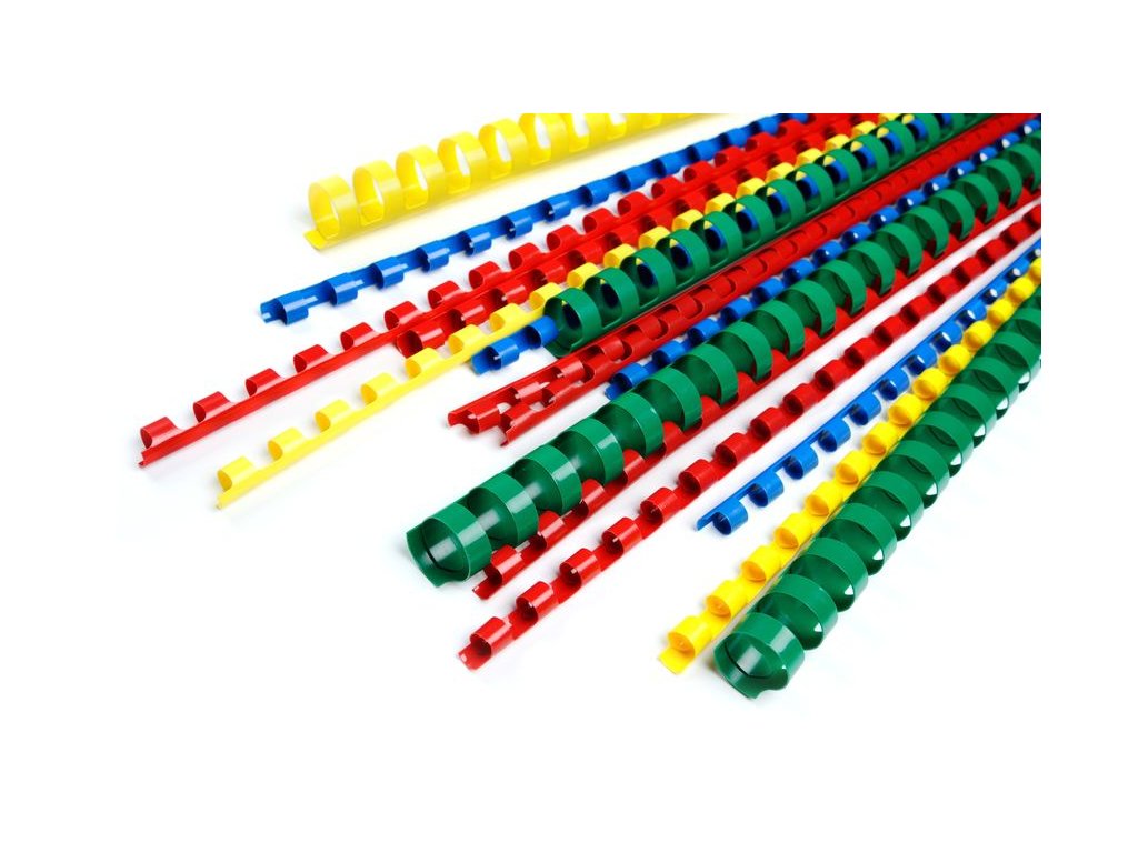 Plastové hřbety různých barev pro vazbu 22 mm.