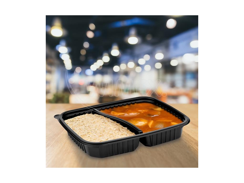 Menu mísa do mikrovlnky (PP) 2dílná černá `L` 250 x 185 mm 1100ml [50 ks]Doplňkové parametry