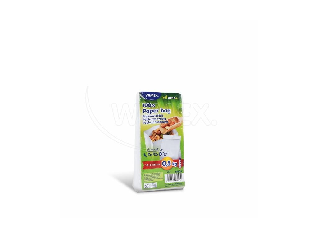 Papírový sáček (FSC Mix) s bočním skladem bílý 10+5 x 22 cm `0,5kg` [100 ks]Doplňkové parametry