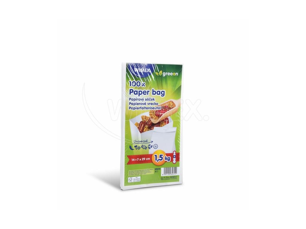 Papírový sáček (FSC Mix) s bočním skladem bílý 14+7 x 29 cm `1,5kg` [100 ks]Doplňkové parametry