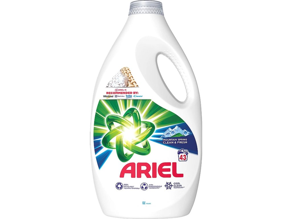 Tekutý prací prostředek Ariel Mountain Spring je speciálně navržen pro praní bílého prádla. Zajišťuje dokonalou bělost, odstraňuje skvrny i při nízkých teplotách a zanechává prádlo se svěží horskou vůní. Balení o objemu 1,8 litru je určeno na 40 pracích dávek.