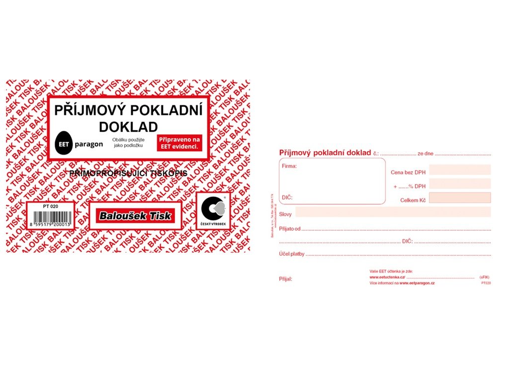 TB Přijmový pokladní doklad bez stvrzenky propisující 50 listů PT020