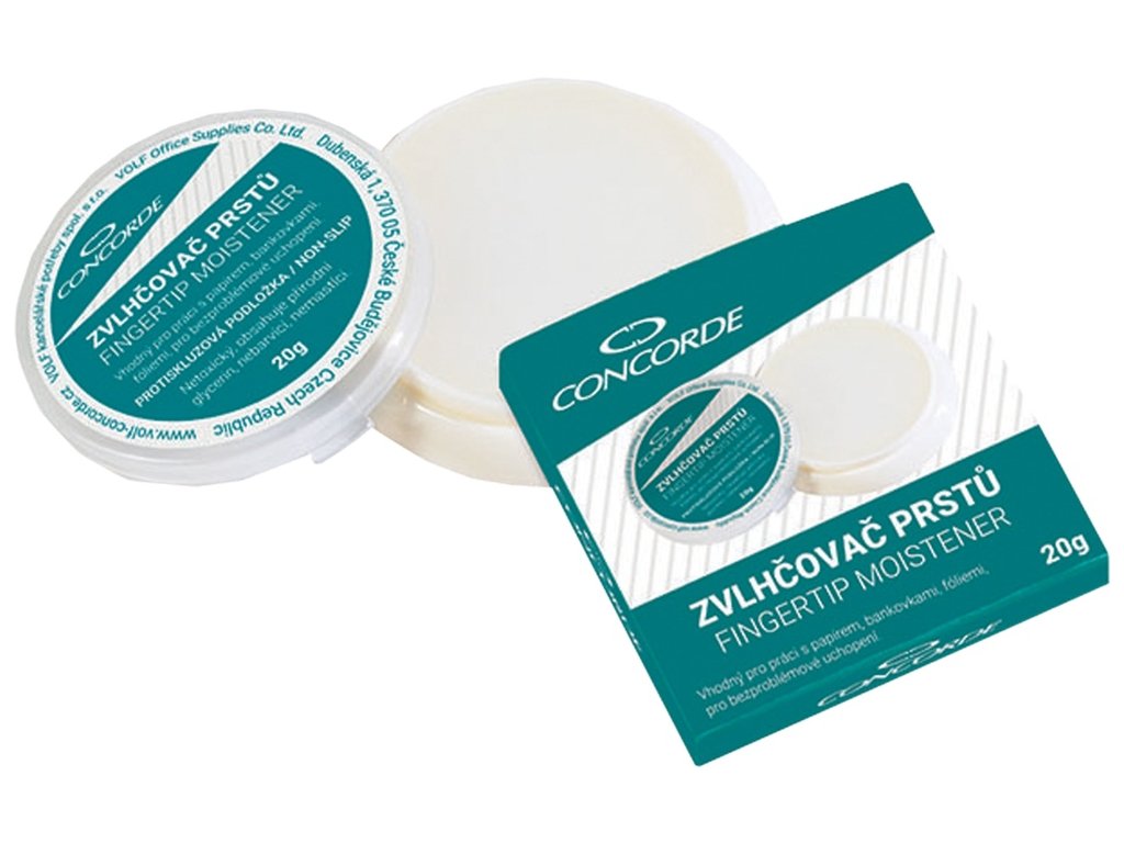 Praktický gelový zvlhčovač prstů v 20g kelímku. Glycerinové složení je hygienické, nezanechává skvrny na papíře a je šetrné k pokožce. Usnadňuje a zrychluje listování v dokumentech, počítání bankovek nebo třídění pošty. Je nepostradatelnou pomůckou v bankách, na poštách, v účtárnách a v jakékoliv kanceláři, kde se pracuje s velkým množstvím papíru. Protiskluzová podložka zabraňuje posouvání po stole.